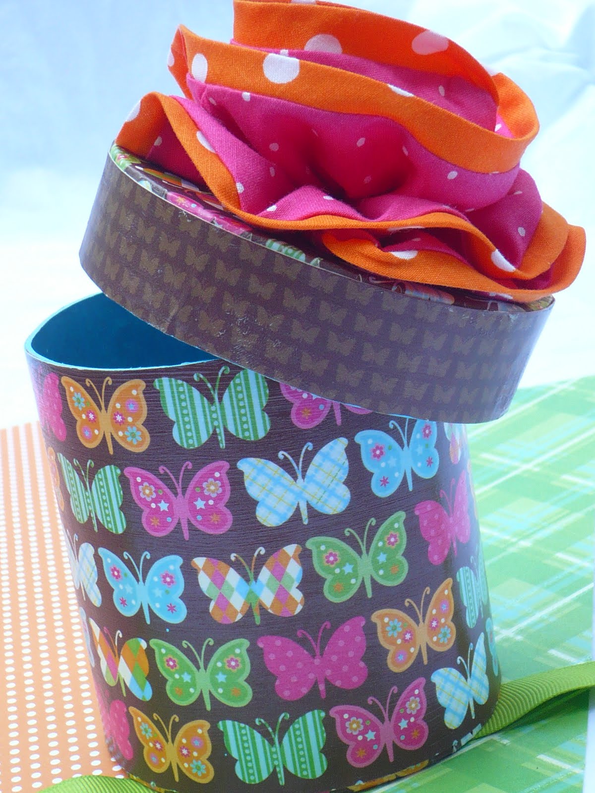 These small boxes are covered in beautiful papers and have an adorable flower on the top of the lid.